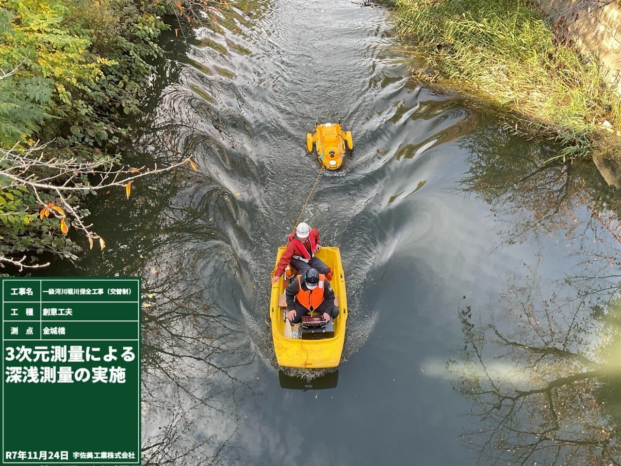 浚渫土量確認の為、ラジコン ボート にて