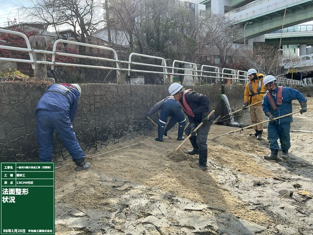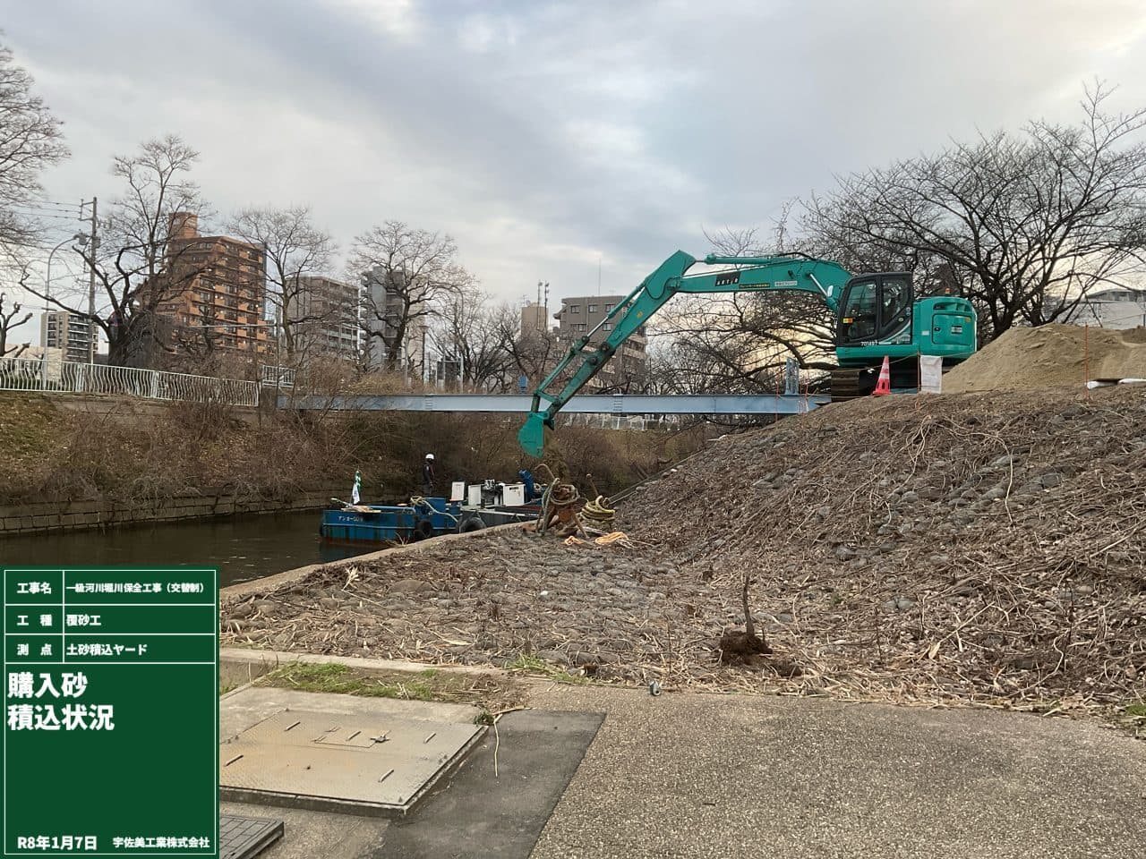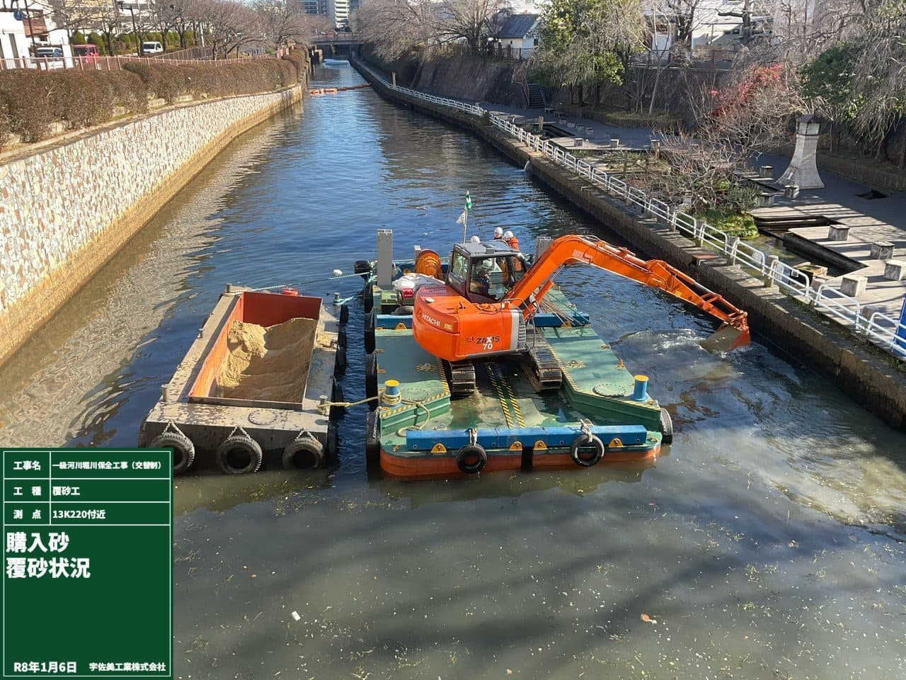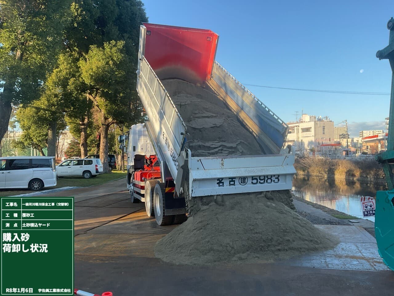購入砂運搬完了後、 施工箇所にて