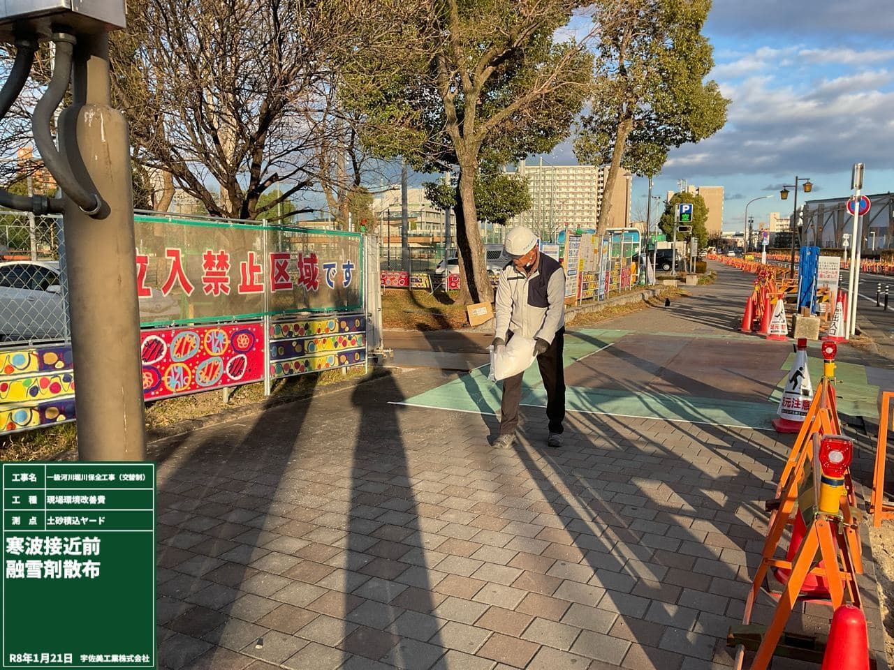 凍結防止対策として 融雪剤を散布しました。