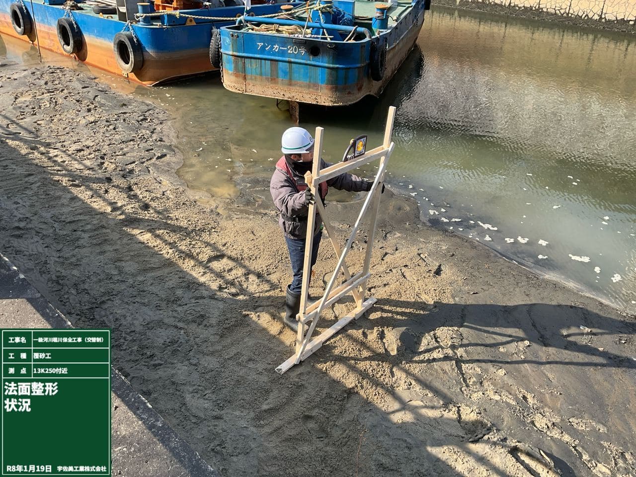 上流から下流に向かって浚渫を します。