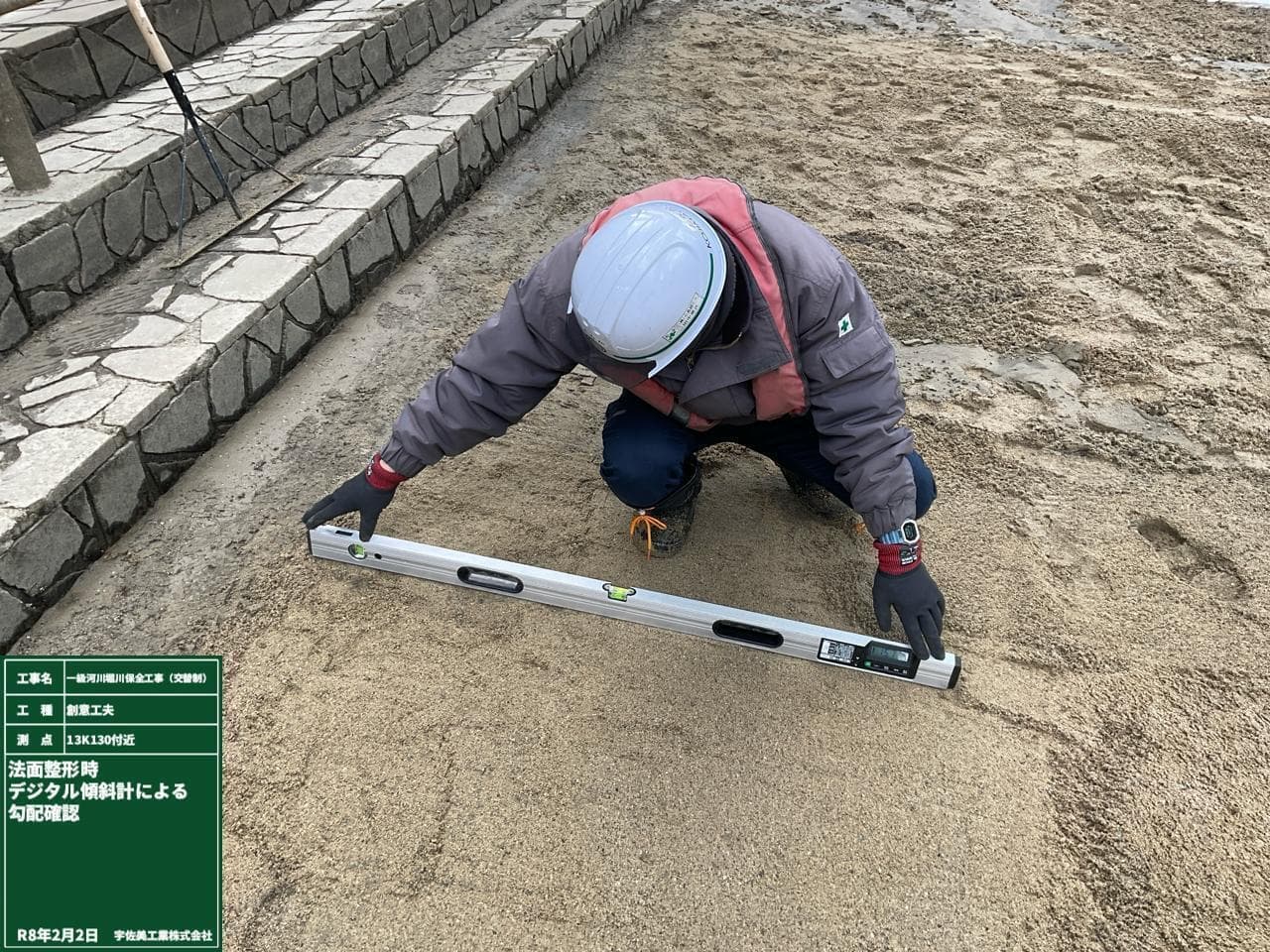 なるよう法面整形をしています。