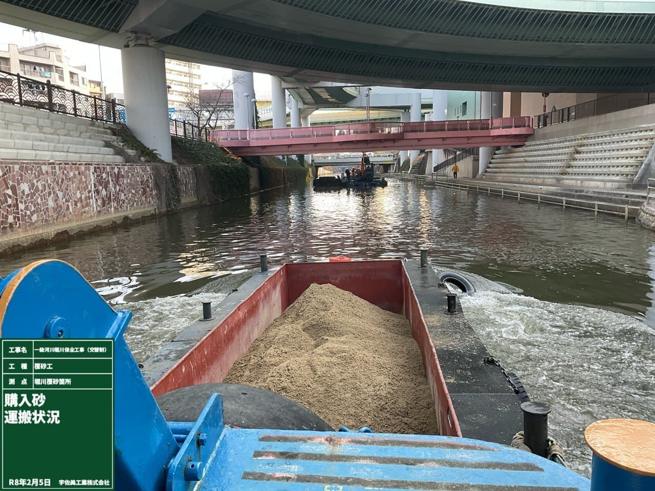 土運船へ積込み完了後、押船にて施工箇所へ