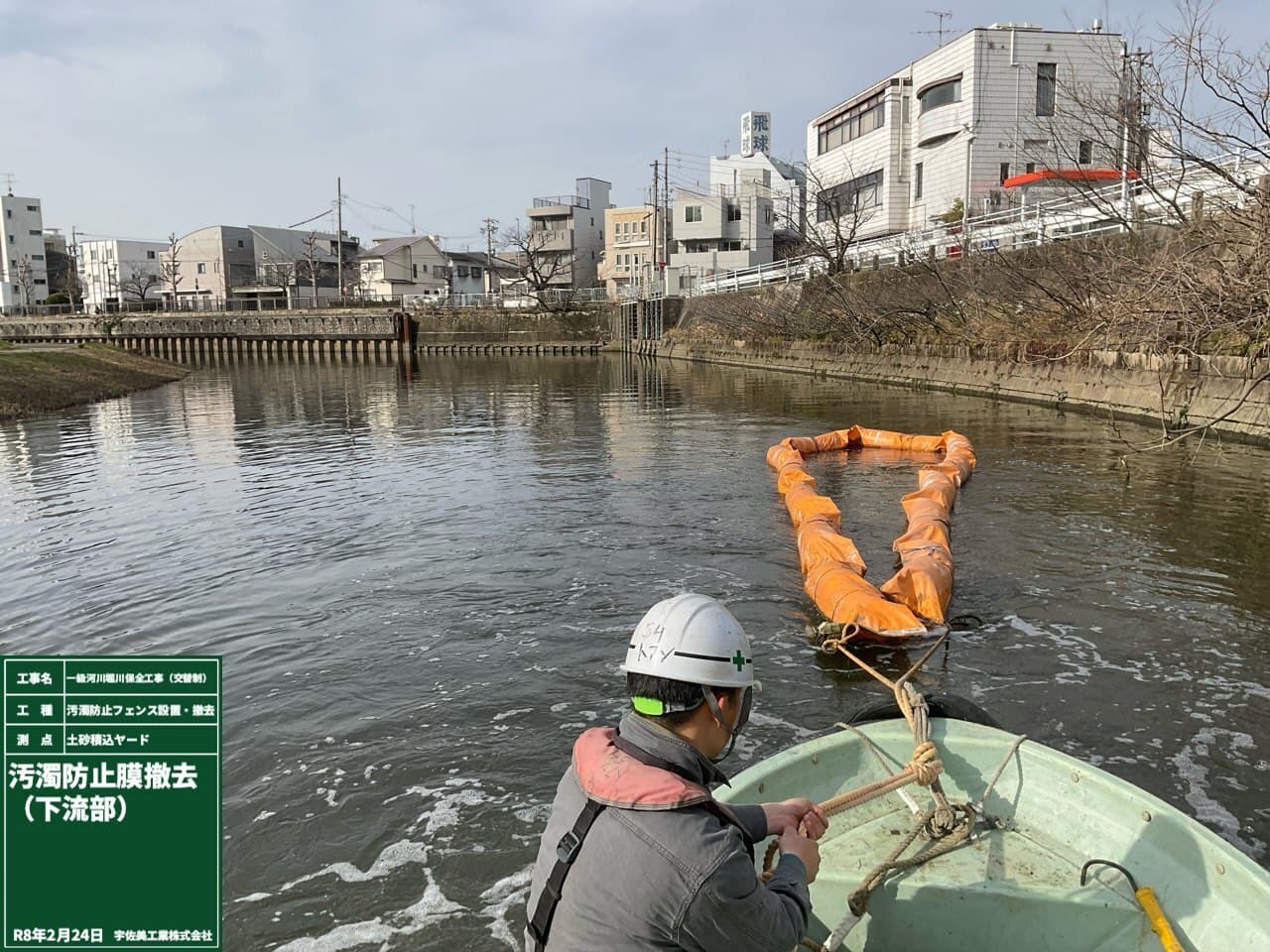 上下流に設置していた汚濁防止膜