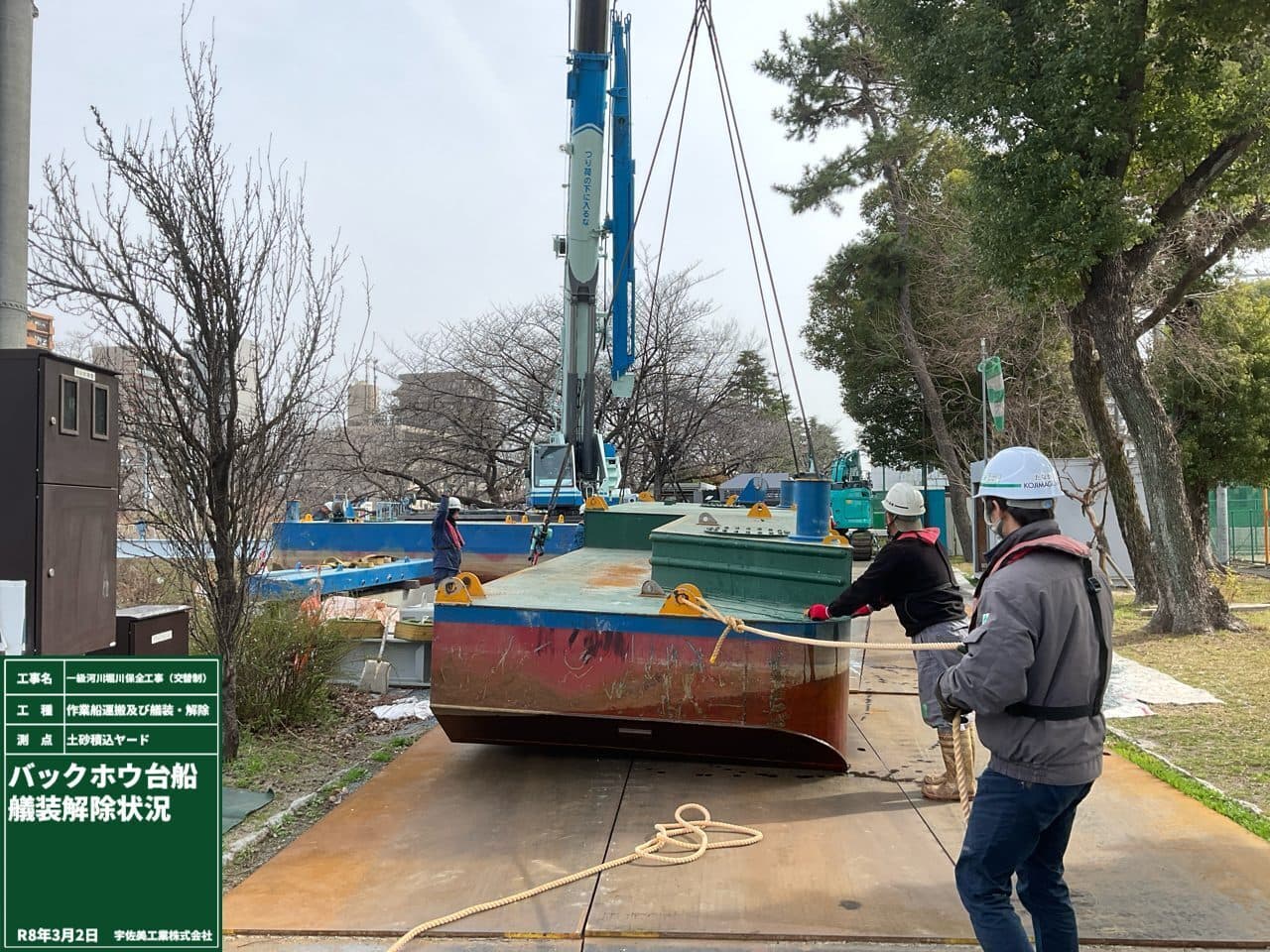 バックホウ台船艤装解除しました。