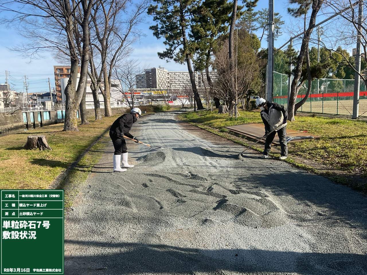 敷鉄板撤去後、かさ上げ材を敷設して